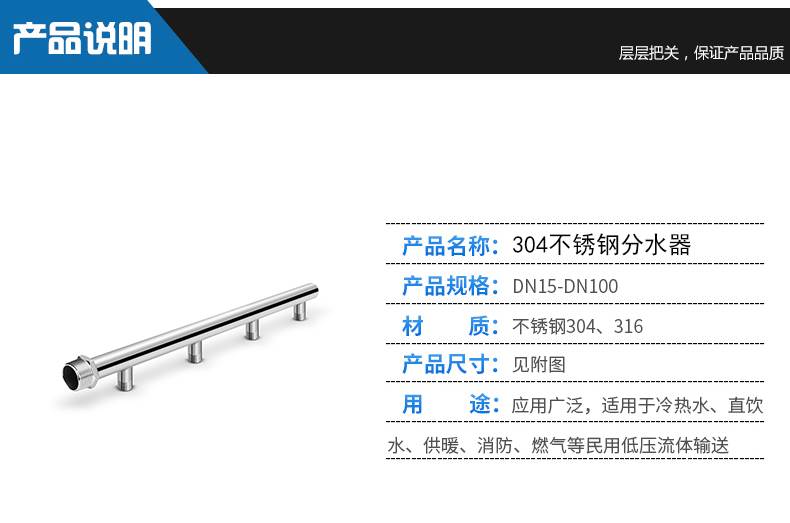 产品详情:公司的使命是“始终如一地关切和满足客户需要。扎根管井,用更可靠的质量和更好的连接,为每一位造物主提供更专业的服务”是公司生产分水器和其他管道配件的基本。决意将公宇建设成为全盘的不锈钢管道系统制造和服务提供商,以及客户值得信赖的合作同伴。坚称“双赢,感恩,奉献,精益,创新”的基本观念。一直致力于让每个家庭都喝上安全,卫生和身心健康的饮用水;奋斗变动由水管材料引起的水质二次污染,提供优质的薄壁不锈钢管件。将广州共誉发展成为具备国际竞争力的世界公司和兼具影响力的不锈钢管材制造公司。